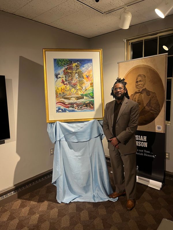 "Harrietsβ Inconvenient Truths (H.I.T.)" is an evocative acrylic and collage piece that explores the duality of American history through two Harriets: Stowe, author of Uncle Tom's Cabin, and Jacobs, a former slave and abolitionist voice. Born from workshops at Hartfordβs Stowe Center for Literary Activism, the artwork blends surrealism and symbolism, using flooded cabins, torn chains, and juxtaposed paths to portray resilience, justice, and transformation.